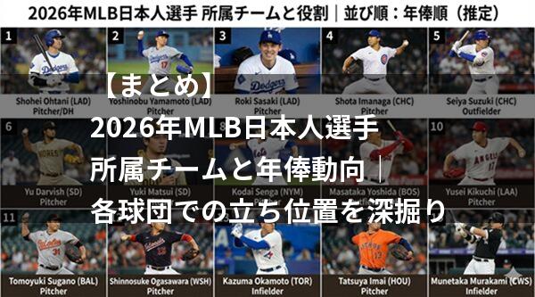 本記事では、過去最多となる日本人メジャーリーガー全選手の所属先と、新天地での活躍が期待される移籍組の動向を徹底解説しました。
