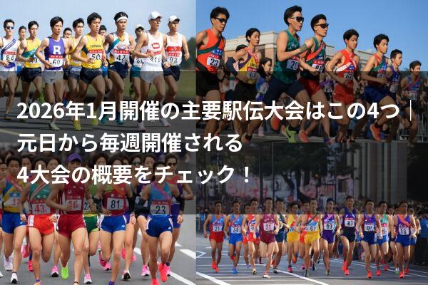 2026年の幕開けは、駅伝ファンにとって特別な1ヶ月となります。元日から毎週のように、日本のトップランナーたちがしのぎを削る主要大会が開催されるからです。年末年始の慌ただしさで見逃してしまわないよう、まずは開催される4つの大会の概要を把握しておきましょう。この記事を参考に、お正月の観戦計画を今から立てて、熱い戦いに備えてください。