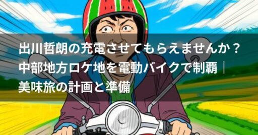 出川哲朗の充電旅!中部地方を電動バイクで巡る美味旅を徹底解説。絶景や絶品グルメ、歴史と人情に触れる感動のロケ地巡り。あなたの旅の計画から準備まで全てをサポートします。 -