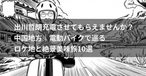出川哲朗さんが中国地方を電動バイクで旅した人気番組のロケ地をご紹介!絶景、地元グルメ、観光スポットを巡る旅に出ませんか?倉敷、尾道、松江、萩、鳥取砂丘…各地の魅力を満喫し、忘れられない思い出を作りましょう! -